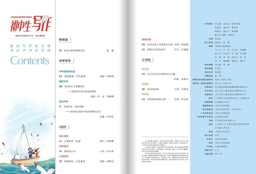 《初中生寫作》雜志是一個專門為初中生提供寫作指導和交流平臺的期刊。本雜志的宗旨是鼓勵和培養初中生的寫作能力,提供優質的寫作資源,為他們的成長和發展提供支持。雜志致力于為初中生提供具有啟發性和指導性的寫作文章。我們會邀請一些優秀的作家、教育專家和編輯團隊,為讀者撰寫教學性強、內容豐富的寫作文章。這些文章會涉及各種寫作形式,如小說、故事、詩歌、議論文等,力求引發讀者的興趣,并能從中學到寫作技巧和經驗。