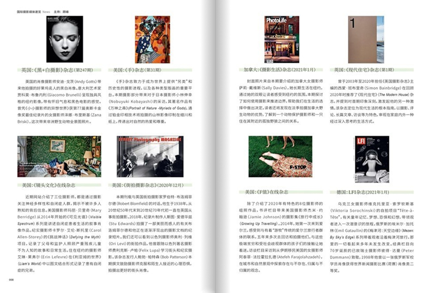 每期雜志都會邀請國內外知名攝影師、專家學者等撰寫專欄文章,分享攝影心得、經驗和見解。同時,該雜志還開設了讀者投稿板塊,為廣大攝影愛好者提供展示自己作品的機會,促進交流與學習。主要介紹攝影器材的選購、使用和維護,包括相機、鏡頭、閃光燈等相關設備的介紹和評測,讓讀者了解各種器材的特點和使用技巧。