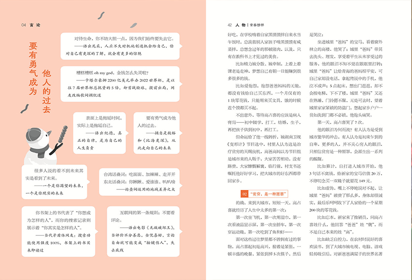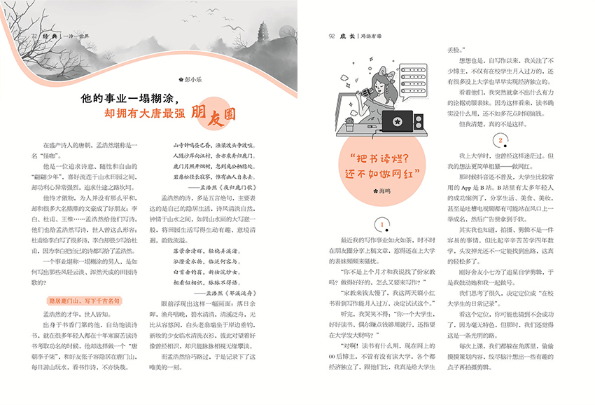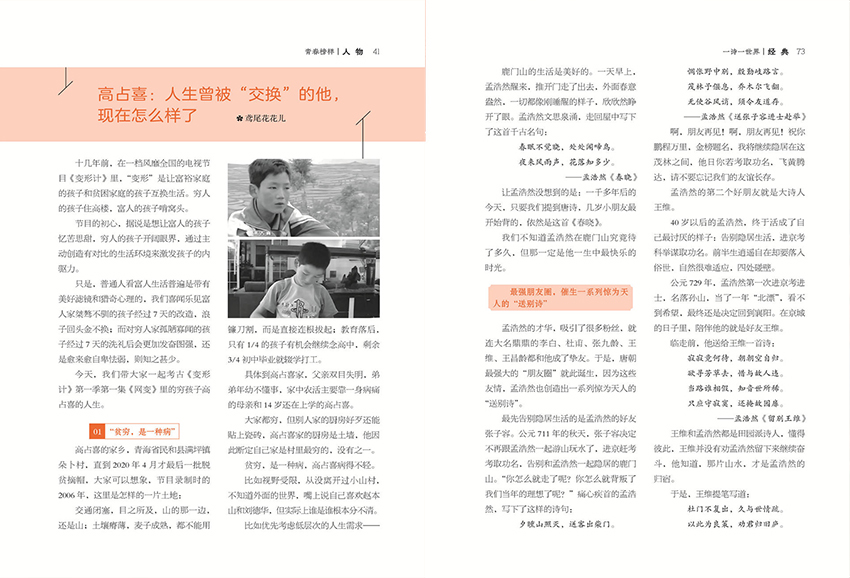 除了時事評論,雜志還會為你介紹一些真情和智慧故事。這些故事可能是真實的人物經歷,也可能是寓言或者富有啟發性的小品。通過這些故事,你可以從別人的經歷中獲得共鳴和啟示,進而砥礪自己的心靈。另外,雜志還會關注當下的人物風尚,介紹潮流新銳名人。無論是時尚界的設計師、音樂界的藝人,還是其他領域的杰出人物,他們都會在雜志中得到關注和介紹。這些人物的成功經歷和創新思維可以激發你的靈感,讓你對自己的未來充滿信心。