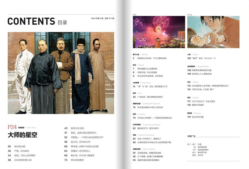 在內容方面,該雜志每期都囊括了眾多的精彩文章,涉及領域包括但不限于政治、經濟、文化、歷史、科技、教育和社會問題等。雜志注重對時政熱點事件和社會變革進行分析和解讀,深入挖掘背后的原因和影響,以及可能的未來發展趨勢。此外,該雜志還以精彩的書評、文化評論和人物專訪等內容為讀者提供了廣泛的知識和啟發。