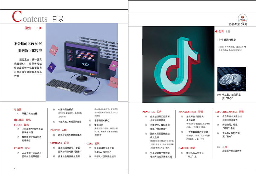 雜志的內(nèi)容豐富多樣,涵蓋了人力資源管理的各個(gè)方面。除了上述提到的招聘、培訓(xùn)、績(jī)效、員工關(guān)系等核心領(lǐng)域外,還關(guān)注人力資源管理的前沿?zé)狳c(diǎn)問(wèn)題,如人力資源數(shù)字化轉(zhuǎn)型、人工智能在人力資源管理中的應(yīng)用、全球化背景下的跨文化人力資源管理等。這些前沿?zé)狳c(diǎn)內(nèi)容能夠幫助讀者及時(shí)了解行業(yè)發(fā)展趨勢(shì),拓寬視野,為企業(yè)的人力資源管理創(chuàng)新提供思路和借鑒。雜志的形式也十分靈活多樣。除了深度的理論文章和實(shí)踐案例分析外,還設(shè)有專(zhuān)家訪談、企業(yè)人力資源管理實(shí)踐分享、人力資源管理小貼士等欄目。