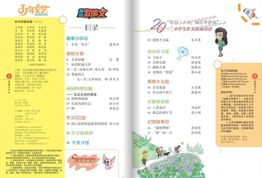 此外,雜志還定期邀請知名作家、編輯和文學評論家撰寫專欄文章,分享寫作心得、文學鑒賞和行業動態,為讀者提供更廣闊的文學視野和思維碰撞。通過這些專欄文章,讀者可以更深入地了解文學創作的技巧和趣味,激發自己的想象力和創造力。雜志提供各類寫作比賽和活動信息,鼓勵青少年積極參與,并為他們提供展示作品的機會,讓更多人認識和欣賞他們的作品。