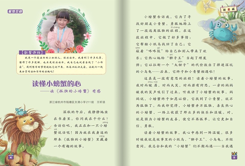 總之,該雜志是一本積極向上、富有教育意義的刊物,它不僅展示了小學生的文學風采,更致力于激勵小學生熱愛寫作、提高寫作水平,同時也為家長和老師提供了有效的教育交流平臺。相信隨著該雜志的不斷發展壯大,它將為廣大小學生的成長成才和教育教學事業做出更大的貢獻。每期雜志都會從全國各地收集眾多小學生的優秀作文,涵蓋了各種題材和體裁,如敘事、記敘、議論等,展現了小學生豐富多彩的思想和想象力。