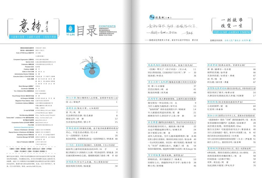 《意林》雜志以獨(dú)特的視角和深度的內(nèi)容,深受讀者喜愛(ài),并在文化界具有廣泛的影響力。該雜志的宗旨是傳播中華文化,弘揚(yáng)中華民族的優(yōu)秀傳統(tǒng)和精神,推動(dòng)社會(huì)進(jìn)步和人類文明的發(fā)展。雜志的內(nèi)容涵蓋了文學(xué)、歷史、哲學(xué)、藝術(shù)、科學(xué)等多個(gè)領(lǐng)域,以獨(dú)特的視角和深度的探討吸引了廣大讀者。