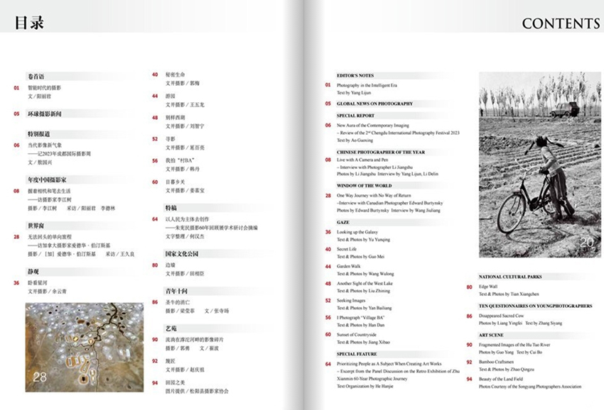《中國(guó)攝影家》雜志的內(nèi)容包括:專題報(bào)道、作品欣賞、技術(shù)交流、名家訪談、國(guó)際攝影活動(dòng)報(bào)道等。其中,專題報(bào)道是該雜志的特色之一,每期都會(huì)針對(duì)某個(gè)主題進(jìn)行深入的報(bào)道和分析,如人像攝影、風(fēng)光攝影、紀(jì)實(shí)攝影等,旨在幫助讀者更好地了解和掌握不同類型攝影的技巧和方法。作品欣賞是該雜志的另一個(gè)重要欄目,每期都會(huì)刊登國(guó)內(nèi)外攝影家的優(yōu)秀作品,這些作品涵蓋了各種類型的攝影,從風(fēng)景、人物到紀(jì)實(shí)攝影,從黑白到彩色,無所不包。這些作品不僅具有觀賞性和欣賞性,更重要的是它們展示了攝影藝術(shù)的多樣性和深度。